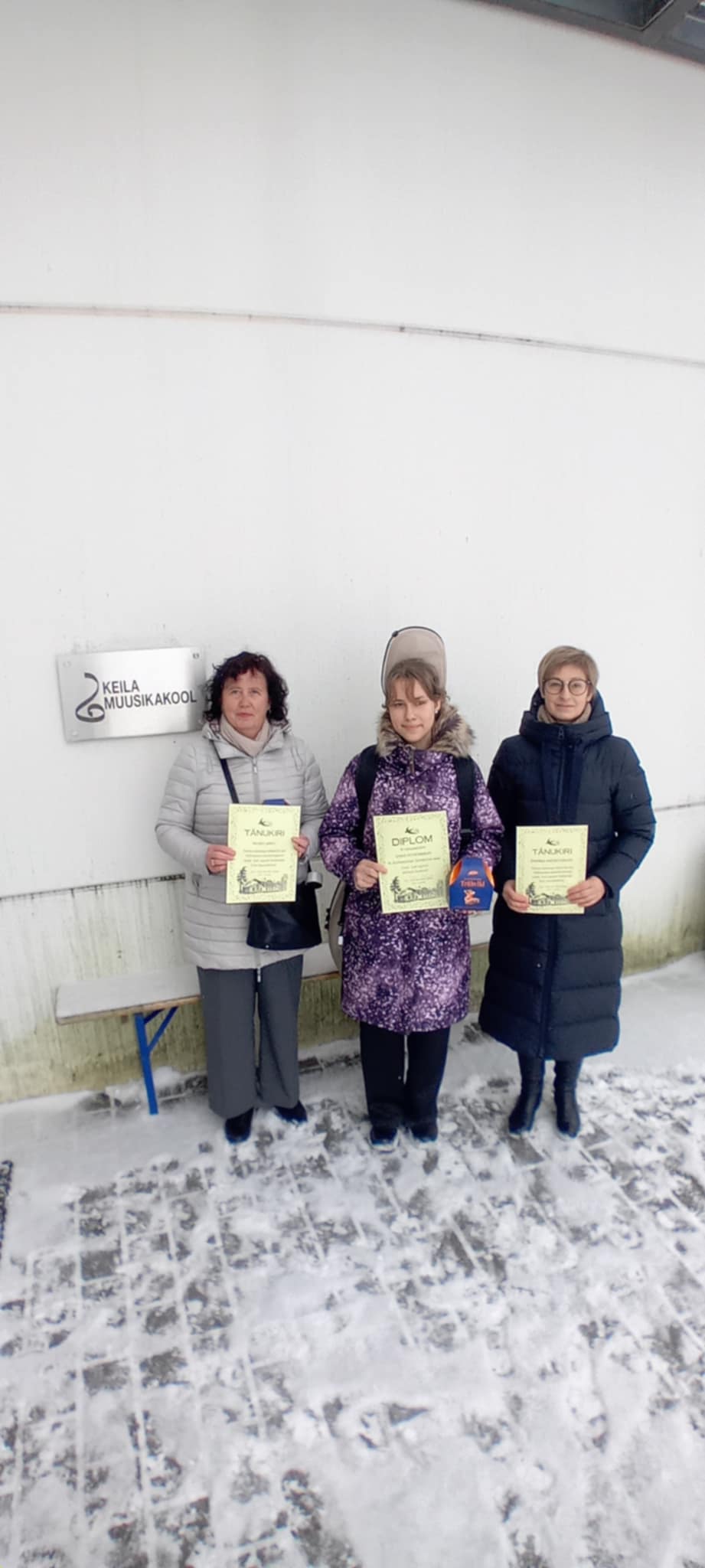11.02. Keila muusikakoolis Aruküla Huvialakeskuse korraldatud Loode- Eesti muusikakoolide tšelloõpilaste konkursil osalenud ning eduka esinemise eest tänukirja saanud 6.klassi õpilane Erika Eichenbaum õpetaja Ingrid Arro ja kontsertmeister Zhanna Andreevskayaga.
